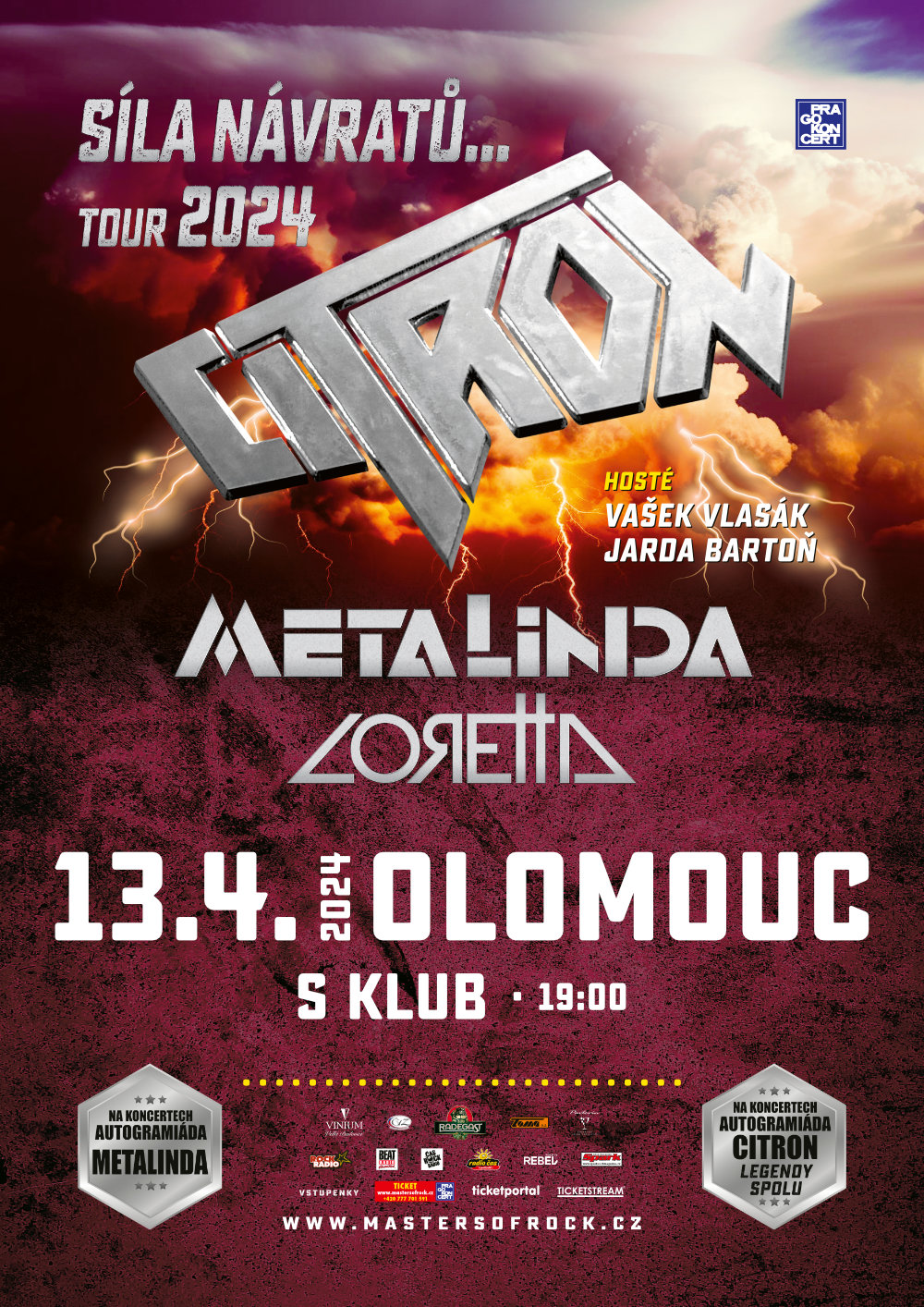 Na jaro 2024 se chystá velký návrat legend československé hard and heavy scény! Kapely CITRON i s bývalými členy Jardou Bartoněm a Vaškem Vlasákem, slavná METALINDA a dámská metalová legenda LORETTA vyrazí na jaře 2024 na společné turné, nazvané trefně „Síla návratu“! Turné odstartuje 1. března 2024 v PRAZE, MeetFactory a zastaví se v 10 českých a moravských městech!