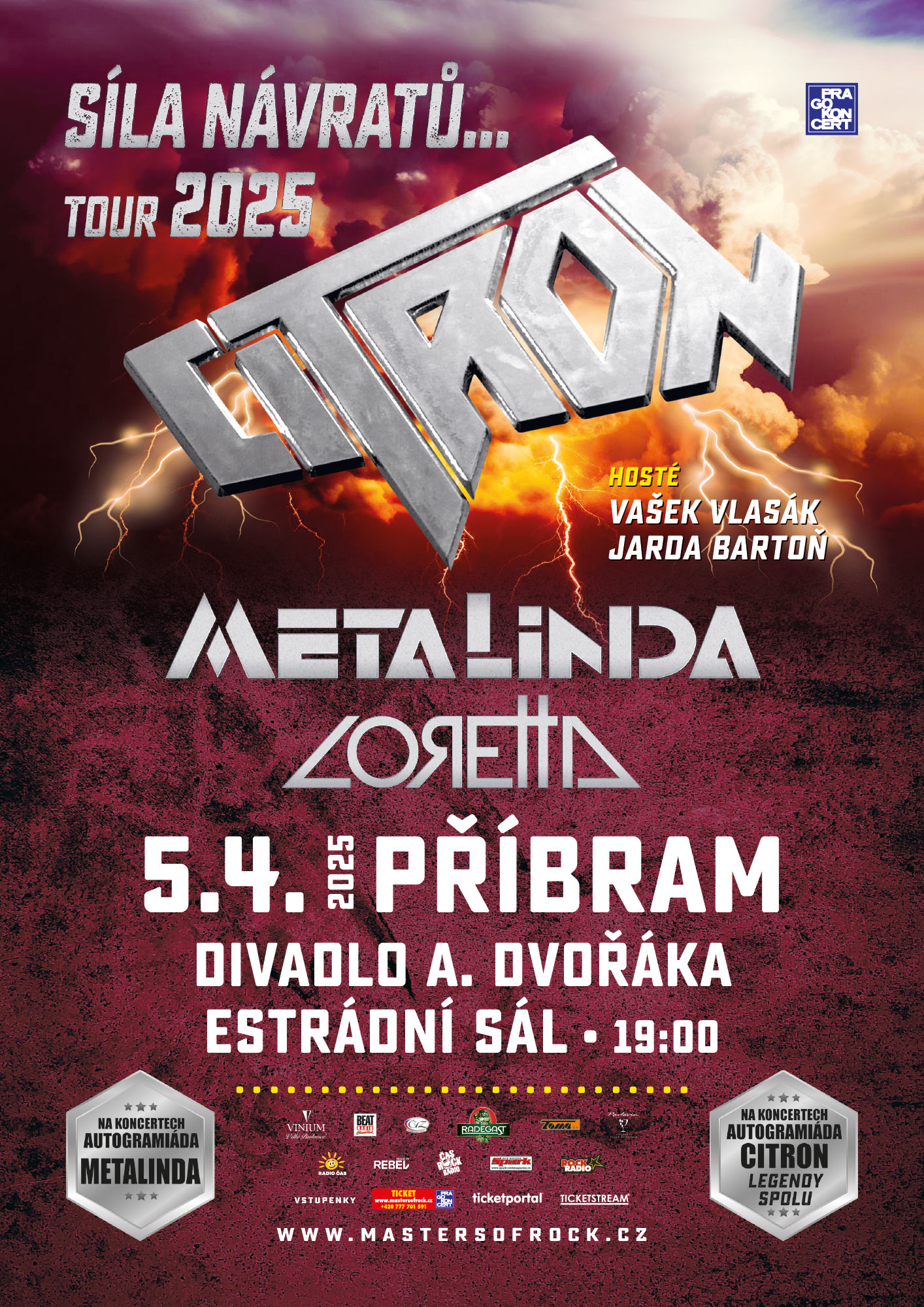 Letos na jaře vyrazily česko-slovenské hard´n´heavy legendy CITRON, METALINDA a LORETTA, doprovázené speciálními hosty, bývalými členy kapely CITRON, Jardou Bartoňem a Vaškem Vlasákem na velké společné turné „Síla Návratů“! A síla to opravdu byla! Valná většina z 10 koncertů byla zcela vyprodána a všechny koncerty zaznamenaly obrovské nadšení u fanoušků!