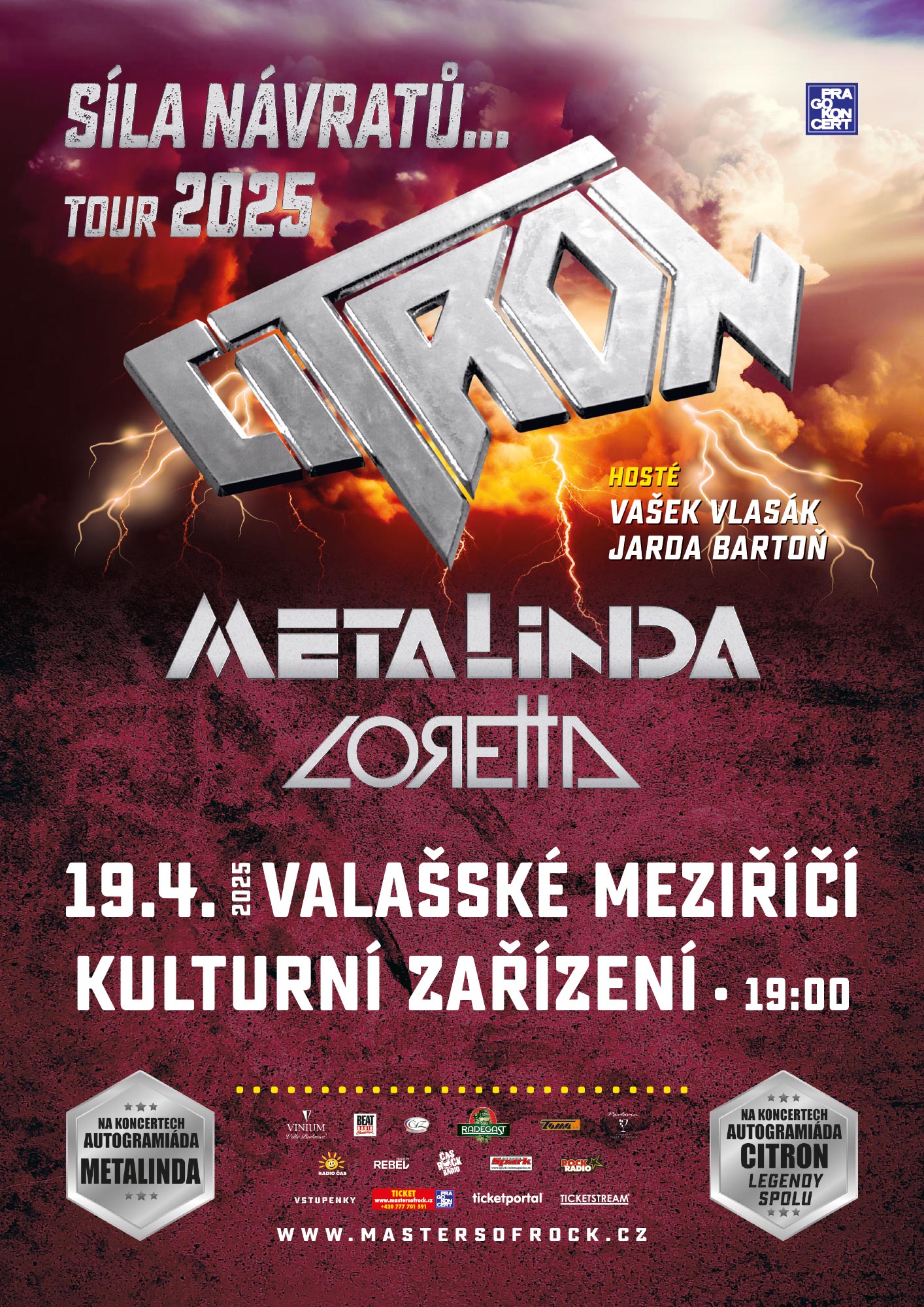 Letos na jaře vyrazily česko-slovenské hard´n´heavy legendy CITRON, METALINDA a LORETTA, doprovázené speciálními hosty, bývalými členy kapely CITRON, Jardou Bartoňem a Vaškem Vlasákem na velké společné turné „Síla Návratů“! A síla to opravdu byla! Valná většina z 10 koncertů byla zcela vyprodána a všechny koncerty zaznamenaly obrovské nadšení u fanoušků!
