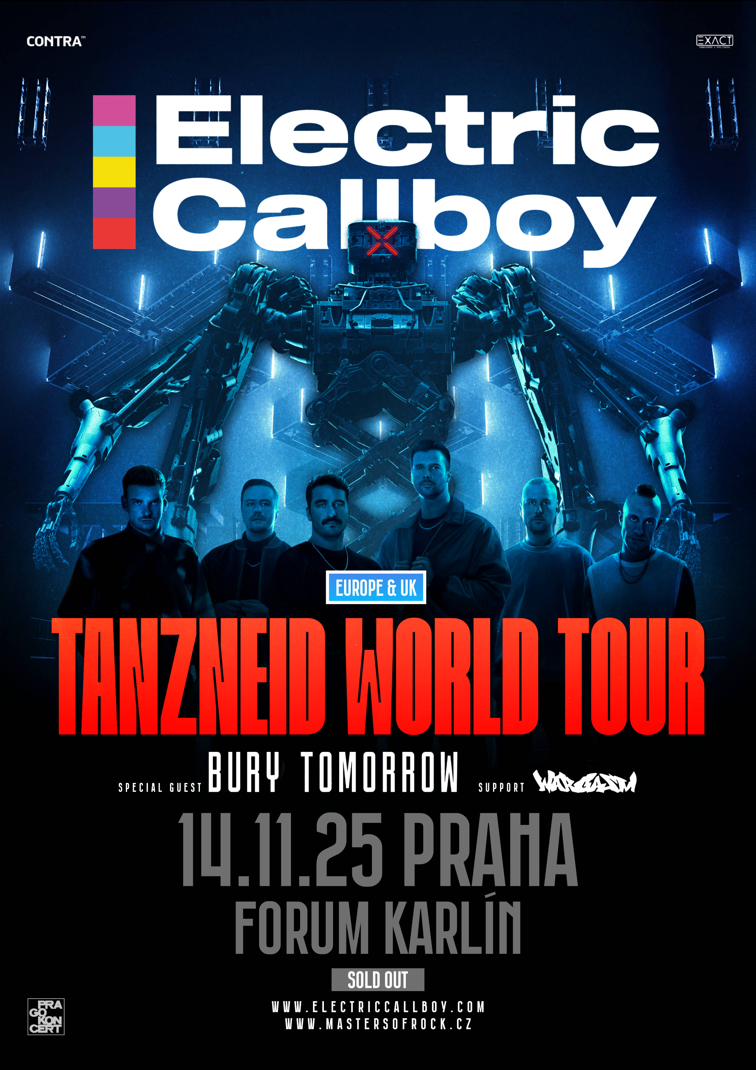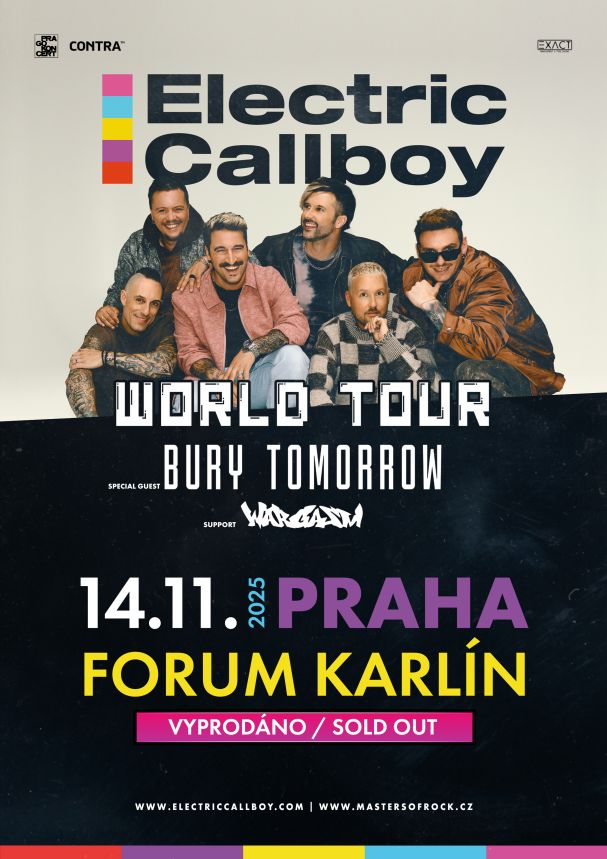 Čekání je konečně u konce! Mnohokrát ověnčená, ceněná a velmi oblíbená metal-core banda ELECTRIC CALLBOY s nadšením oznamuje své očekávané SVĚTOVÉ TOUR, v rámci něhož opět rozproudí krev v žilách, svými energickými a barvitými show, ty nejznámějších evropské arény. ELECTRIC CALLBOY už jsou známí tím, že nekompromisně vyprodávají sály po celém světě, a i nyní tomu nejspíš nebude jinak! Tito bezva kluci slibují, že na tomto turné s nimi zažijete další nezapomenutelný live zážitek! Čekejte pulzující beaty, elektrizující riffy a nezastavitelnou, silnou energii, která zase posune hranice vašeho prožitku z živé show dál a výš!