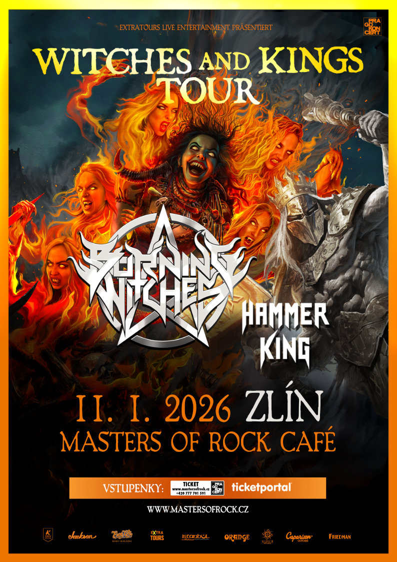 Čarodějky povstávají a král je následuje! Hned z kraje roku 2026 se švýcarská heavymetalová kapela plná magicky krásných žen, BURNING WITCHES, vydá na své dlouho očekávané evropské turné! Pod hlavičkou WITCHES & KINGS TOUR 2026 přivezou na pódium nejen své nadcházející, velmi očekávané album, ale také velmi speciálního hosta: německé epické metalové monarchy HAMMER KING!