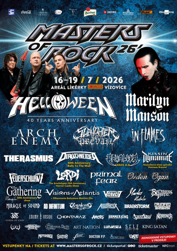 MASTERS OF ROCK, to už není jen další festival, je to pro fanoušky z celého světa něco jako letní potřeba, zvyk, dovolená plná nezapomenutelných zážitků, kterou nikde jinde nezažijete! 22. ročník „Masters“ se uskuteční ve dnech 16.–19. 7. 2026 a svoji účast již potvrdily tyto kapely: