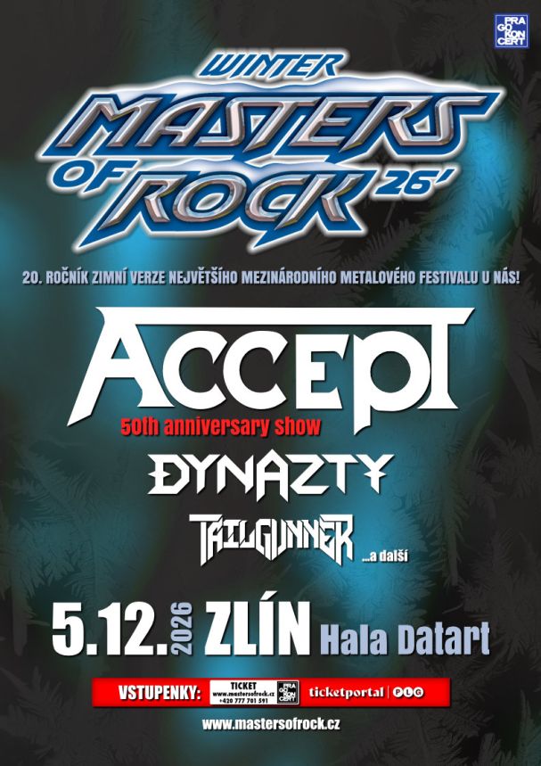 Oblíbená jednodenní zimní varianta vizovického MASTERS OF ROCK festivalu, ZIMNÍ MASTERS OF ROCK se po roční pauze vrací v plné síle a nadšení! Letos svůj 20. ročník oslaví v sobotu 5. prosince ve zlínské sportovní hale Datart, monumentální oslavou 50. výročí slavných heavy-metalových průkopníků ACCEPT! ACCEPTi vám ve své dosud největší a nejpropracovanější pódiové show představí celé půlstoletí metalové historie, a u toho by snad žádný opravdový fanoušek metalu neměl chybět! Souběžně s výročním turné chystají ACCEPT koncem tohoto roku vydat ještě speciální album k 50. výročí, které bude obsahovat nově nahrané klasiky, vzácné skladby s významnými hostujícími umělci!