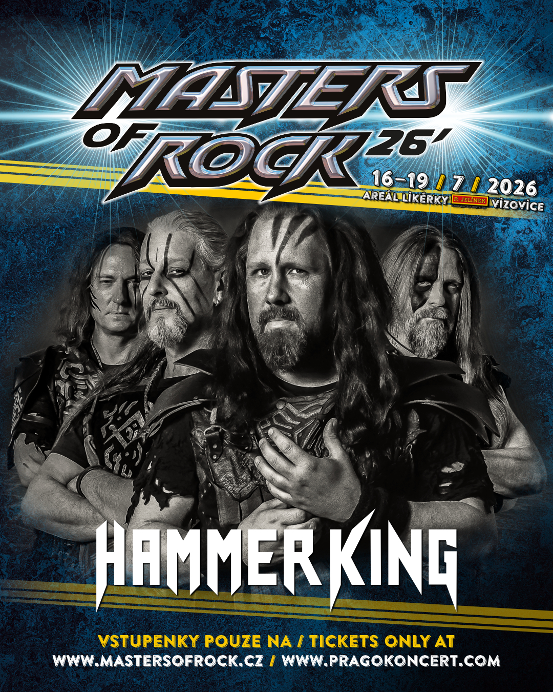 HAMMER KING přijíždí, aby znovu učinili metal královským. Nejfeudálnější heavymetalová kapela se v červenci 2026 opět vydá na výpravu a tentokrát přijede dobýt VIZOVICE, likérku R. Jelínek a vás všechny na 22. ročníku mezinárodního metalového festivalu MASTERS OF ROCK!