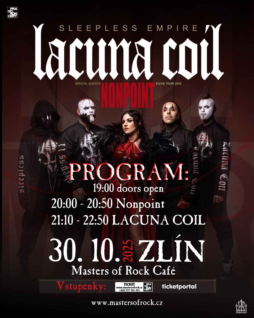 LACUNA COIL + Nonpoint – Sleepless Empire Tour 2025 - 30. 10. 2025, 20:00 – ZLÍN, Masters of Rock Café
