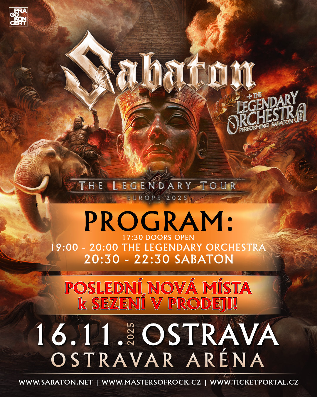 OSTRAVA už žije velkým očekáváním! Už tuto neděli, 16. listopadu večer tady vypukne dlouho očekávaný, dosud nevídaný megakoncert švédských SABATON v rámci svého „The Legendary Europe Tour 2025“. SABATON slibují opravdu legendární show, která se zapíše do dějin! Koncert v OSTRAVĚ byl dlouho dopředu beznadějně vyprodaný, ale podařilo se dát do prodeje ještě několik desítek posledních míst k sezení! >>ZDE<<