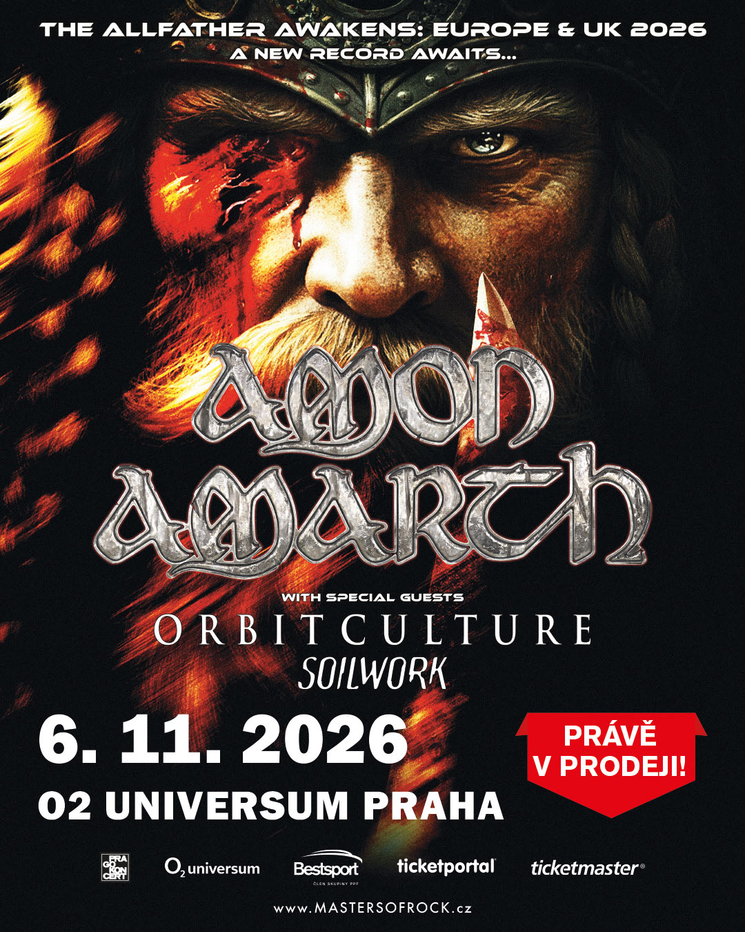 Švédští vikingští metaloví titáni AMON AMARTH s potěšením oznámili své obří turné na podzim 2026 „The AllFather Awakens: Europe & UK Tour 2026“. Bude to čistě švédská invaze plná brutálního metalového drancování, za podpory moderní death metalové hvězdy ORBIT CULTURE a klasických melodic-death metalových SOILWORK! Do pražského O2 universa doputuje tato švédská metalová armáda 6. listopadu 2026!