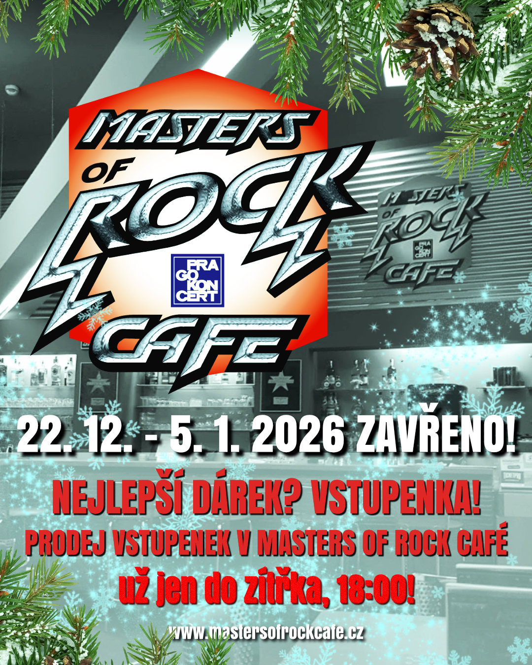Kavárna a klub Masters of Rock Café budou otevřeny už jen do ZÍTŘKA, do 18:00! Znovu se pro vás otevře v pondělí 5. ledna 2026!