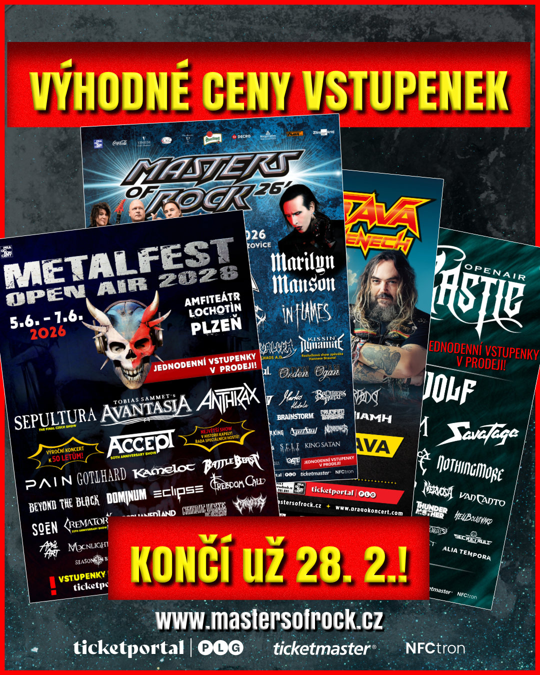 ...MASTERS, OSTRAVU V PLAMENECH i ROCK CASTLE 2026 za výhodné únorové ceny, máte už jen tento týden! V neděli 1. 3. zdražujeme!