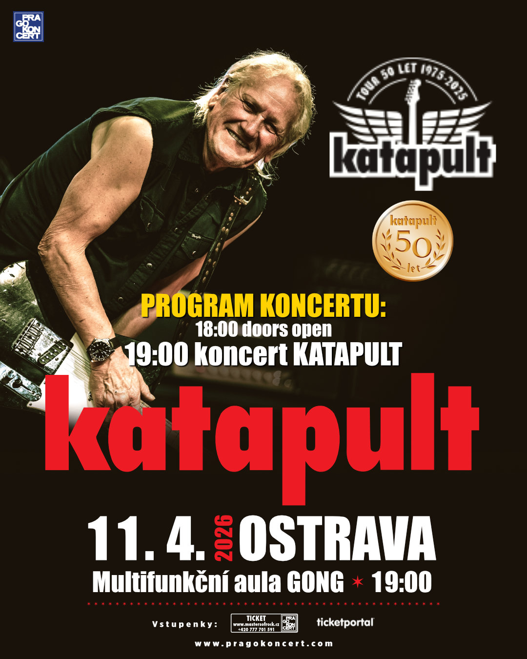 Olda Říha, alias legendární „titanovej Olda“ přiváží už tuto sobotu, 11. dubna večer do ostravského Gongu absolutní, totální, energickou bombu! Výroční koncert KATAPULT k 50. letům této neúnavné ikony českého rocku! A slibuje rockovou jízdu jako hrom! Budou to nezapomenutelné dvě hodiny totálního nasazení! Uslyšíte ty největší hity KATAPULT a prožijete velmi autentickou atmosféru, jakou umí rozdmýchat opravdu jen málokdo!
