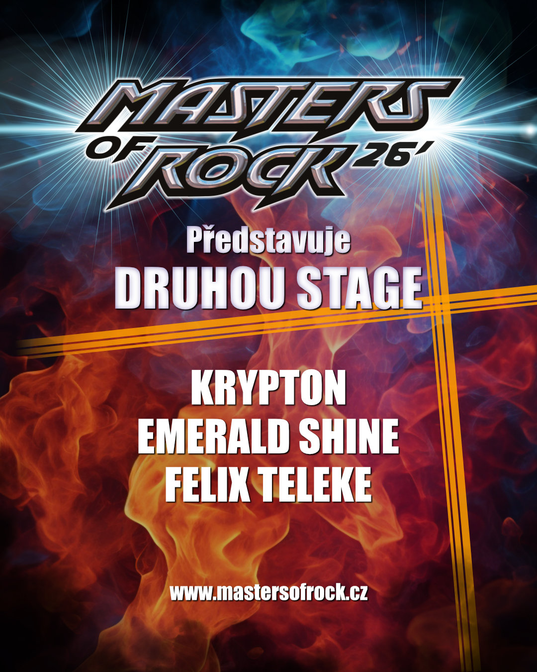 Seznam kapel letošní DRUHÉ STAGE 22. ročníku festivalu MASTERS OF ROCK už je nyní hodně bohatý a zajímavý. Dnes přidáváme novou trojici potvrzených kapel: KRYPTON, EMERALD SHINE a FELIX TELEKE.
