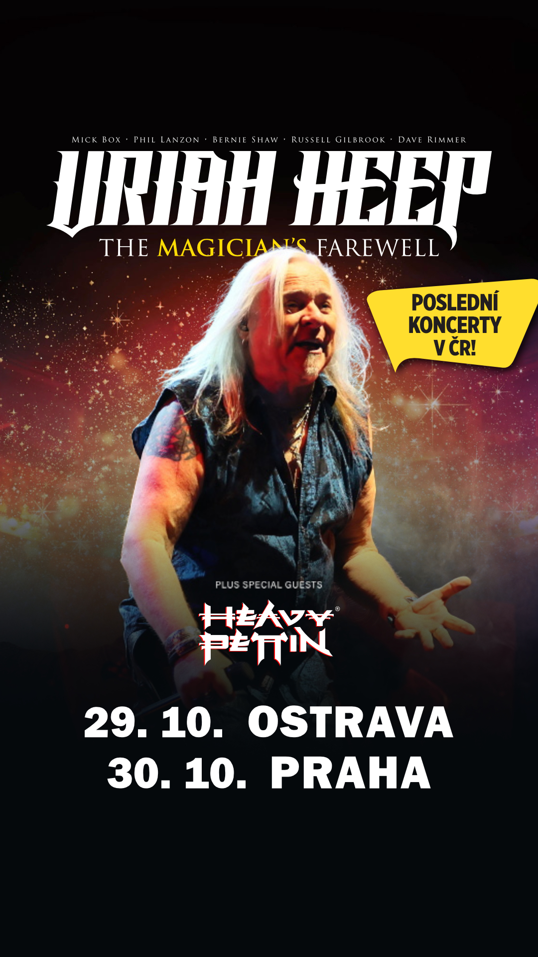 Minulý pátek byl spuštěn prodej vstupenek i speciálních VIP balíčků, na dva koncerty legendárních URIAH HEEP v ČR, v rámci jejich rozsáhlého rozlučkového turné „The Magician´s Farewell“, 29. října v ostravském Gongu a 30. října v pražském O2 universu. Máte už svůj lístek na ta nejlepší místa doma?