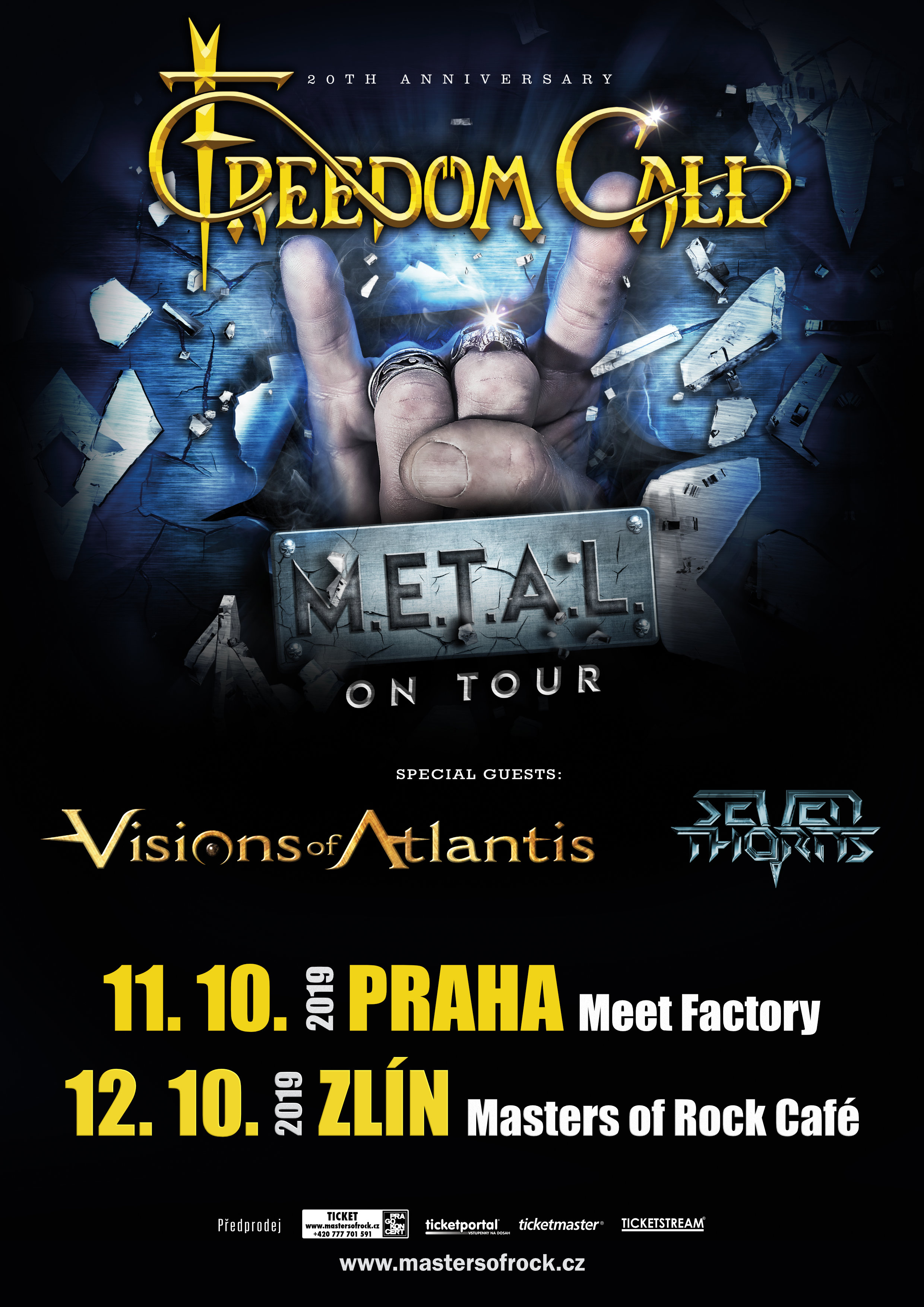 Melodická cháska z Norimberku FREEDOM CALL chystá pro své fanoušky zbrusu novou desku s názvem „M.E.T.A.L.“, která vyjde už 23. srpna. K této příležitosti a zároveň k oslavě 20 let na hudební scéně naplánovala německá power metalová parta podzimní M.E.T.A.L. TOUR 2019 a do téměř dvaceti měst po Evropě přijedou představit své nové hymny. FREEDOM CALL nevynechají ani naši republiku, kde budou mít zastávku hned dvakrát.