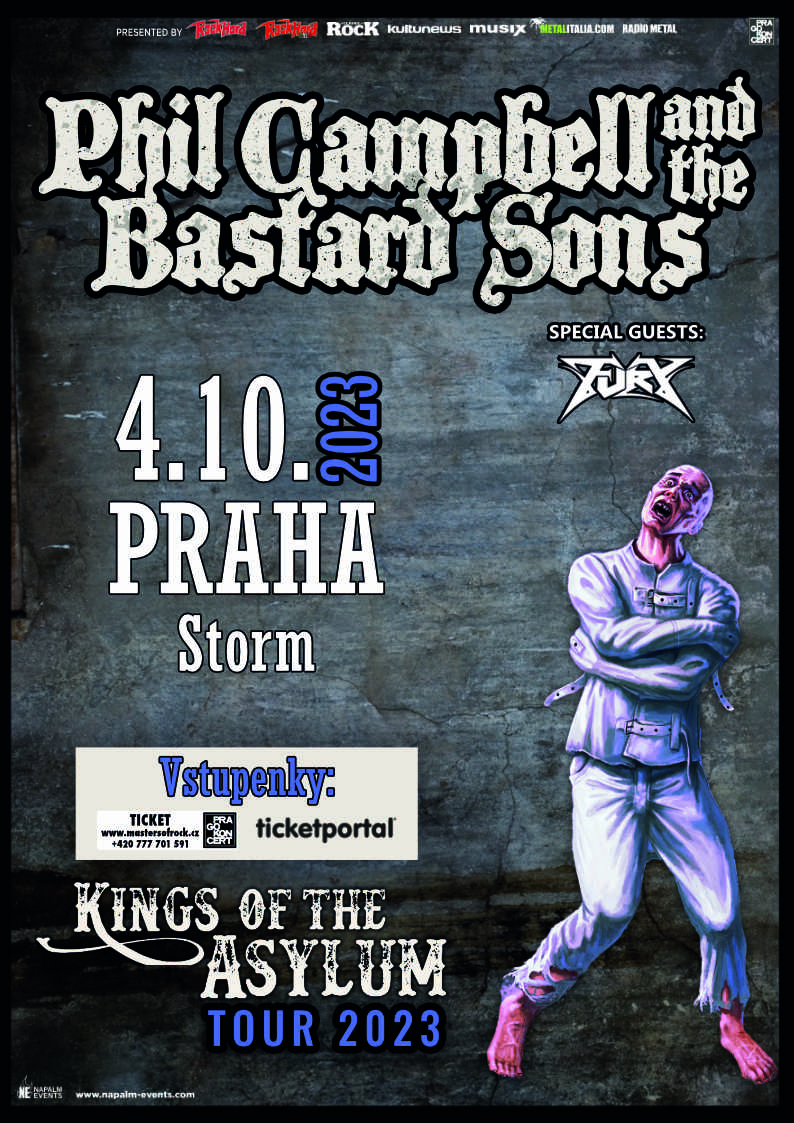 PHIL CAMPBELL AND BASTARD SONS je původně vedlejší projekt posledních pár let slavných MOTÖRHEAD. V čele s jedním z nejrespektovanějších světových kytaristů žánru začala kapela koncertovat v roce 2017 poháněna obrovskou dávkou dobré vůle, energie a se spoustou povedených coververzí MOTÖRHEAD. Poté, v roce 2018 vydali své vlastní debutové album „The Age of Absurdity“ a projekt tak rozkvetl v opravdu velkou kapelu. Druhé album „We´re The Bastards“ bylo ještě lepší a bouřlivější. Nyní kapela oznamuje vydání svého již třetího alba „Kings Of The Asylum“ se kterým už letos na podzim zválcují Evropu!