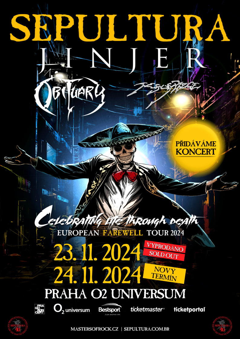 SEPULTURA k turné: “Po 4 desetiletích plných vzestupů a pádů, kdy jsme navštívili 80 zemí a nespočet různých kultur, jsme měli šanci stát se brazilským poslem a šířit naše barvy a rytmy po celém světě. S naším posledním studiovým albem „Quadra“, vrcholem naší kariéry, jsme přidali nezapomenutelnou kapitolu následovanou zkušeností „SepulQuarta“, která nám pomohla společně překonat těžké časy pandemie. Nyní spojíme své síly k poslednímu, silnému rozloučení. A vy všichni můžete být jeho součástí!