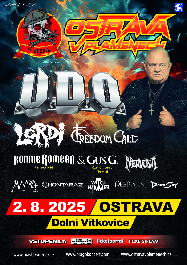 The first bands of the 11th edition of the festival are confirmed! Look forward to the famous German metal icon U.D.O. headed by master Udo Dirkschneider, who had to cancel his participation in the 10th edition of the festival due to health reasons. Udo is now fit again and is looking forward to his long-awaited return to OSTRAVA and to all of you when you´ll all rock with him again! Another confirmed band is also very happy to return to OSTRAVA! The famous Finnish metal monsters LORDI are heading to the festival for the first time ever with their sensational, haunting show full of greatest hits! Passionate and wild thrash-metal will come all the way from Brazil! Rough, energetic beauties NERVOSA are confirmed! The popular band of happy-metalists FREEDOM CALL will put smiles on your faces and make the whole area dance with their catchy music. Famous singer RONNIE ROMERO and guitar wizard GUS G join forces and perform together.