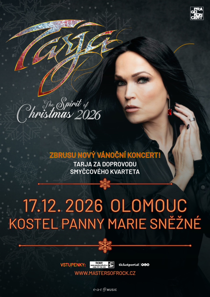 Tradice nádherných a dechberoucích vánočních koncertů finské zpěvačky TARJI TURUNEN pokračuje dál! I letos se k nám v kouzelném adventním čase TARJA vrátí se svým okouzlujícím hlasem a zbrusu novým vánočním koncertem „The Spirit Of Christmas“, tentokrát za doprovodu smyčcového kvarteta! Její vánoční vystoupení vybízejí ke zklidnění a zamyšlení a mnoho jejích fanoušků jistě dosvědčí, že z tohoto koncertu odchází vždy hluboce dojatí a krásně, svátečně naladěni!