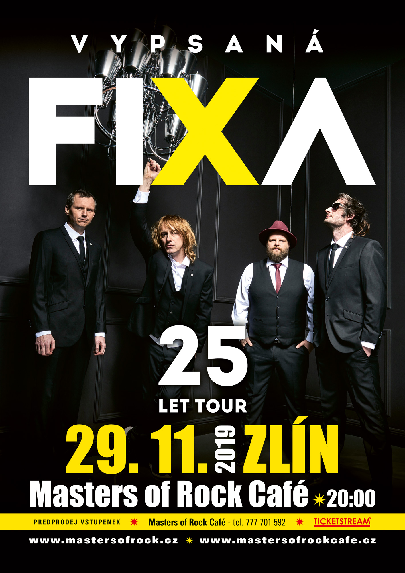 Pozor, pozor, velkolepá narozeninová show se blíží!!!! Agentura Pragokoncert rozhodně nezahálí a tak Vám s radostí můžeme oznámit, že v pátek 29.11.2019 proběhne v klubu Masters of Rock Café velký narozeninový koncert skupiny VYPSANÁ FIXA, která slaví 25 let od svého vzniku!